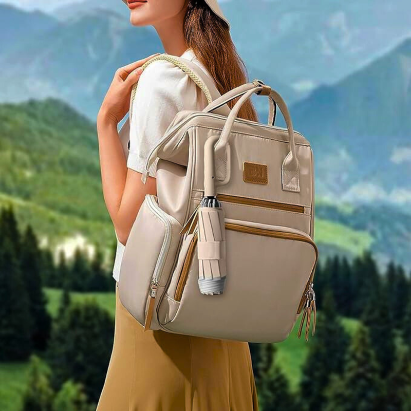 Befestige den Schirm einfach an deinem Rucksack – so bist du immer bereit für den Regen.